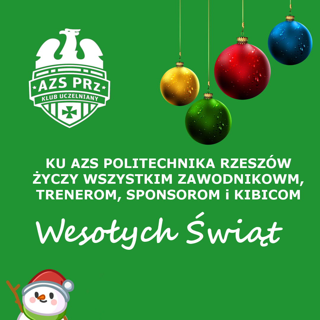 KU AZS Politechnika Rzeszów życzy wszystkim zawodnikom, trenerom, sponsorom i kibicom oraz wszystkim którzy wspierają nasze drużyny: wesołych, spokojnych i najważniejsze zdrowych Świąt Bożego Narodzenia, spędzonych w śród najbliższych.