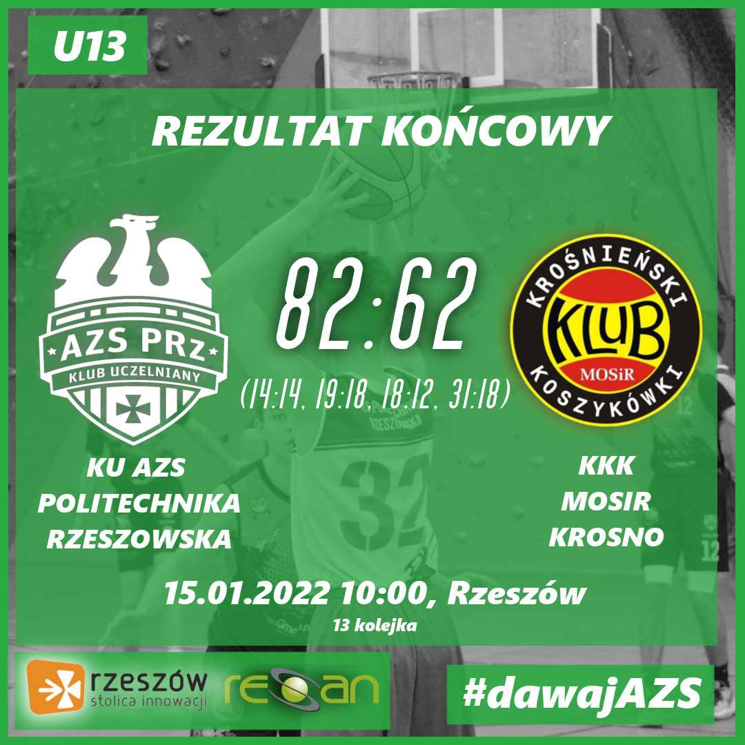 [U13] KU AZS POLITECHNIKA RZESZOWSKA 82:62 KKK MOSIR KROSNO